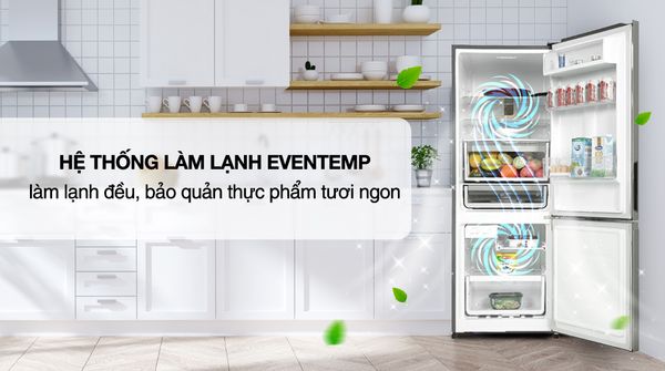 Hệ thống làm lạnh EvenTemp: hơi lạnh được lan tỏa đồng đều khắp các ngăn tủ qua 6 lỗ thoát khí, nhờ đó nhiệt độ luôn được duy trì ổn định trong quá trình sử dụng, thực phẩm được bảo quản lâu hơn và giữ trọn hương vị.