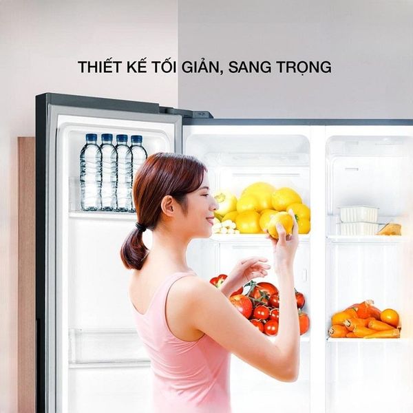 Tủ lạnh HAFELE HF-SB6321FB có thiết kế side-by-side với sắc đen nhám hiện đại, tạo điểm nhấn sang trọng cho không gian bếp. Tay nắm ẩn kết hợp mặt thép không gỉ chống bám vân tay mang lại vẻ ngoài tinh tế và sạch sẽ. Với kích thước hợp lý, sản phẩm phù hợp cho nhiều kiểu không gian nội thất cao cấp. Thiết kế tủ giúp người dùng dễ thao tác, đồng thời tạo cảm giác liền mạch và tối giản cho khu vực lắp đặt.
