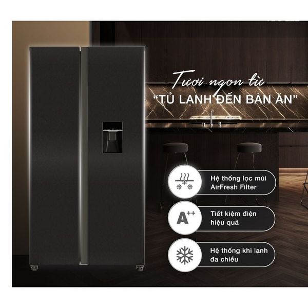 Tủ lạnh HF-SB6321FB tích hợp tính năng lấy nước và đá ngay bên ngoài cửa tủ, tiện lợi khi sử dụng mà không cần mở cửa. Hệ thống lọc nước hiện đại đảm bảo nguồn nước tinh khiết, an toàn cho sức khỏe. Tính năng này không chỉ nâng cao trải nghiệm người dùng mà còn giúp tiết kiệm điện năng bằng cách hạn chế thất thoát nhiệt trong quá trình sử dụng hàng ngày.