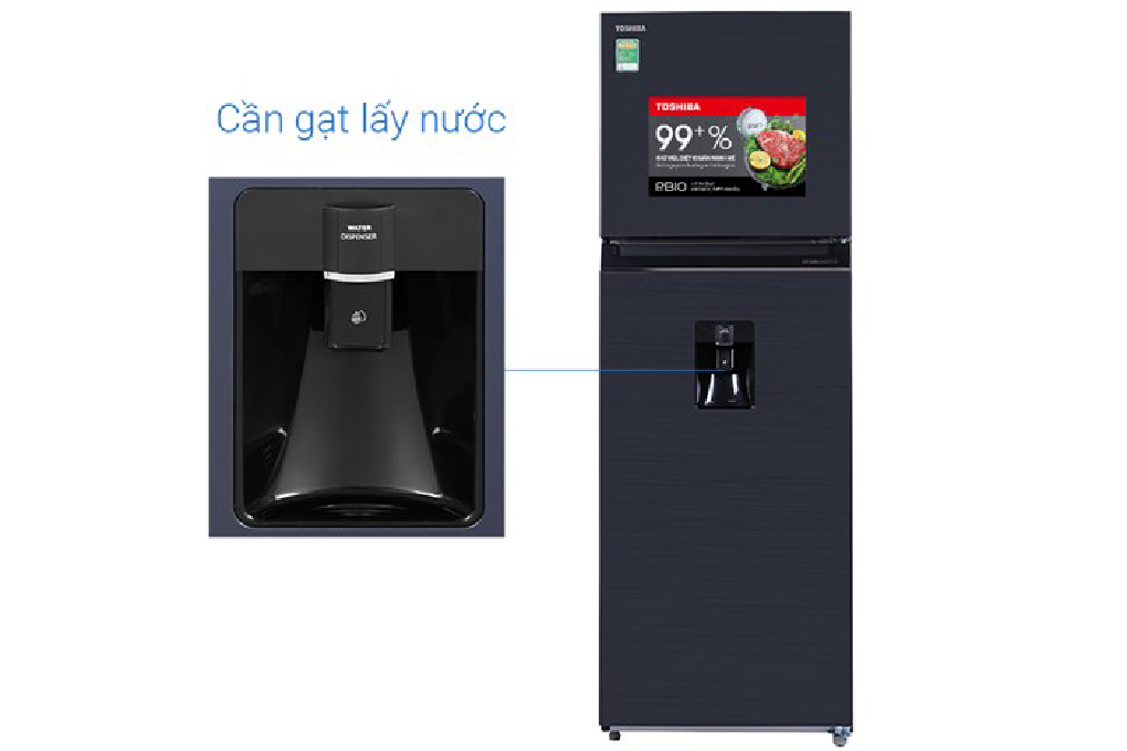 Tủ lạnh Toshiba GR-RT435WE-PMV(06)-MG giúp bạn thưởng thức ngay cốc nước lạnh mà không cần phải mở cửa tủ nhờ ngăn lấy nước được thiết kế bên ngoài tiện lợi. Hơn nữa, bình chứa nước được đặt bên trong tủ (sau cánh cửa) được làm từ chất liệu nhựa an toàn HIPS đạt tiêu chuẩn châu Âu.