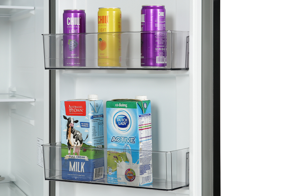 Ngăn lạnh có dung tích 371 lít. Không gian bên trong gồm có 3 kệ chia làm 4 ngăn, 2 ngăn rau củ quả, 1 hộp đựng nước và 4 khay chứa (nằm phía bên cánh cửa).