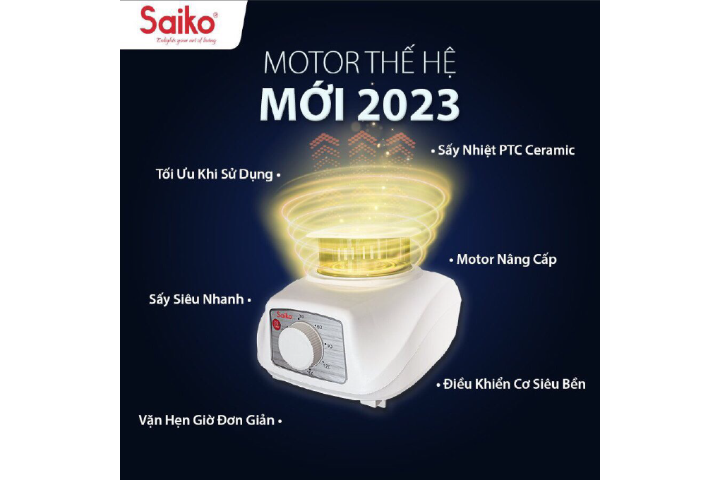 1 moto sấy được đặt phía dưới tủ với công suất 2300W giúp làm khô nhanh chóng, tiết kiệm điện năng, đặc biệt Motor độc quyền được sản xuất trực tiếp từ nhà máy của Saiko.